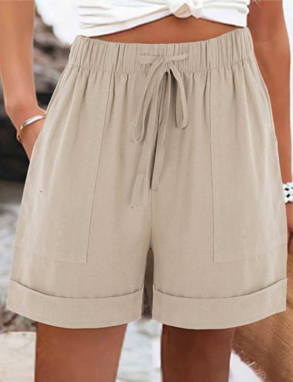 Ladies Elastic Waist Drawstring Cotton Linen Shorts Effortless elegance meets everyday comfort in these refined cotton linen shorts. The elastic waist with adjustable drawstring tie ensures a personalized fit, while the breathable fabric blend keeps you cool and composed through warm weather. Perfect for casual outings or relaxed weekend retreats, these shorts deliver understated sophistication without compromising on ease of wear.